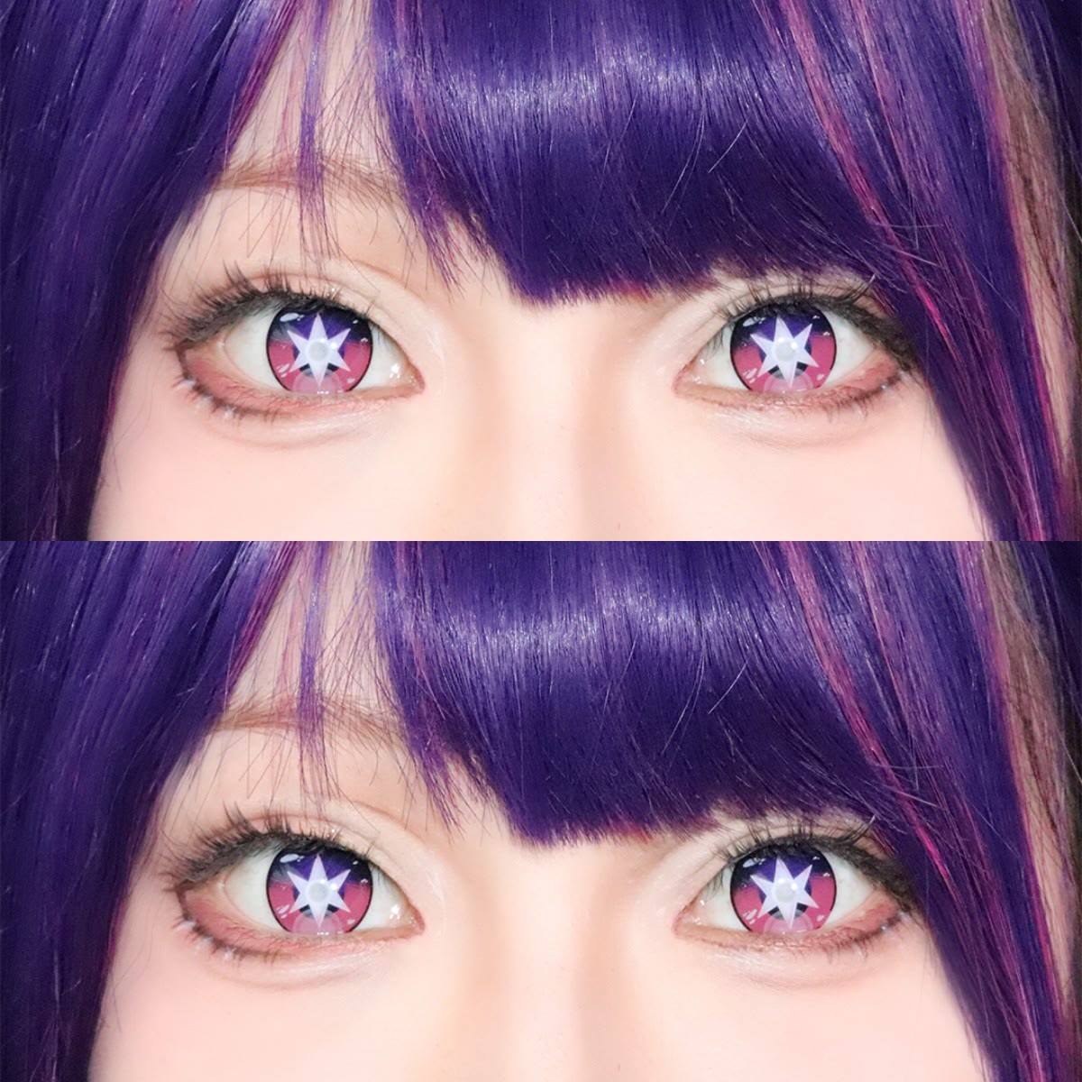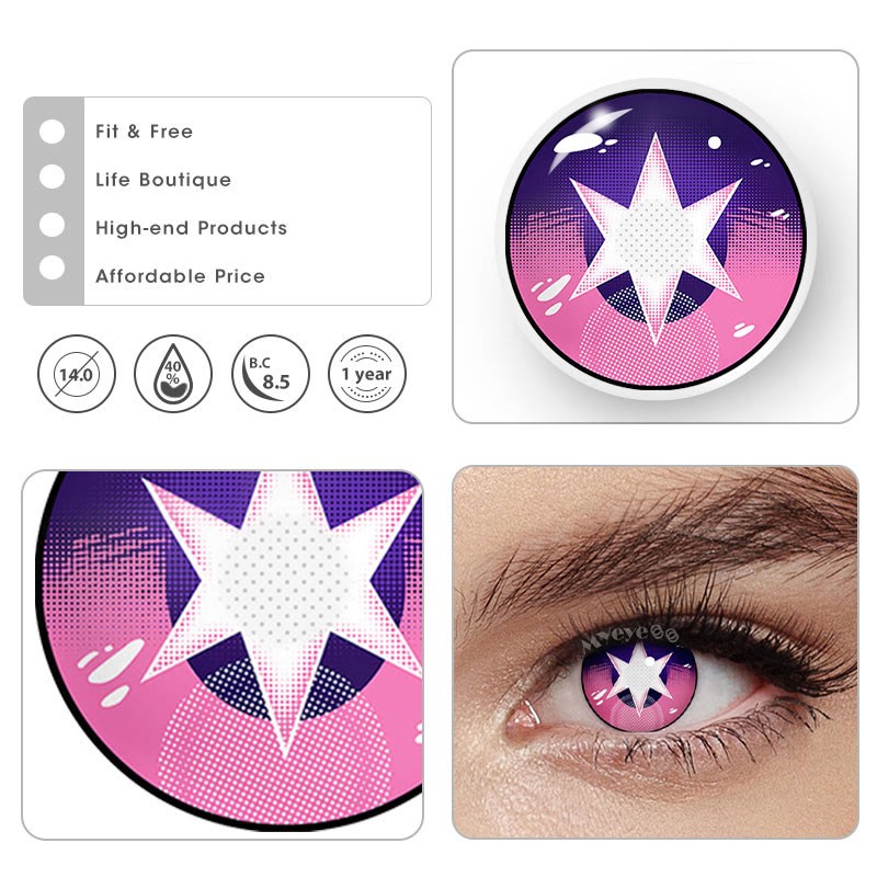 Water content: 40% Material: HEMA Base curve: 8.6mm Thickness: 0.08mm Diameter: 14.5mm Graphic Diameter: 14.0 mm Optical Zone: 0.0 mm Period of use: 12 months Packaging: 1 Pair (2 lenses) + Lens case Tip: The blind lenses partially or completely block your vision. *Packaging Updating. New and old packaging will be shipped randomly. *Lenses on different eye color will show different effects. Pictures for reference only. -Coloredeye