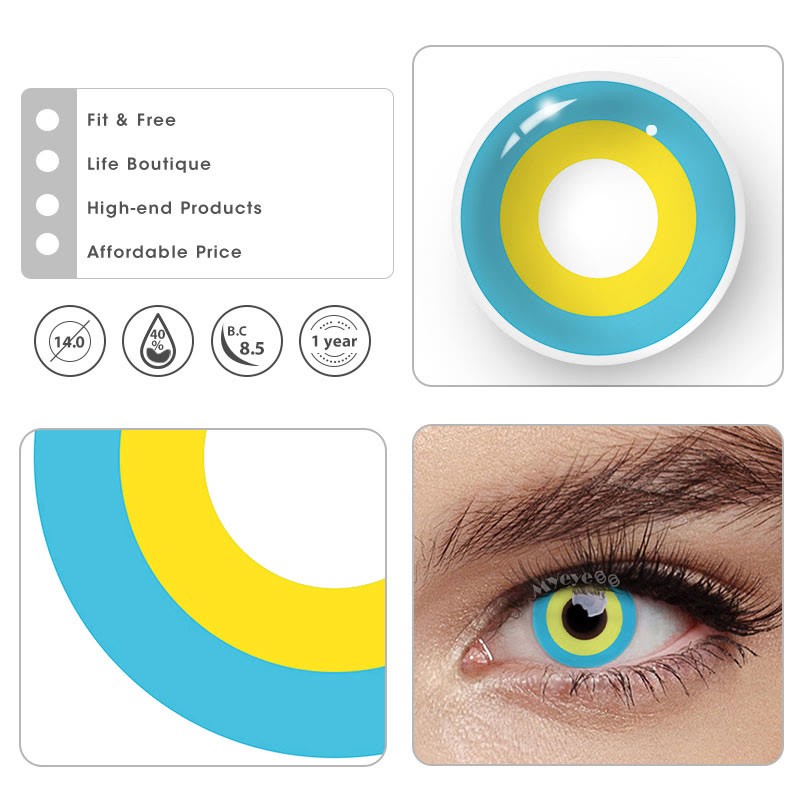 Eyemi Block Blue & Yellow Prescription Cosplay Colored Contact Lenses