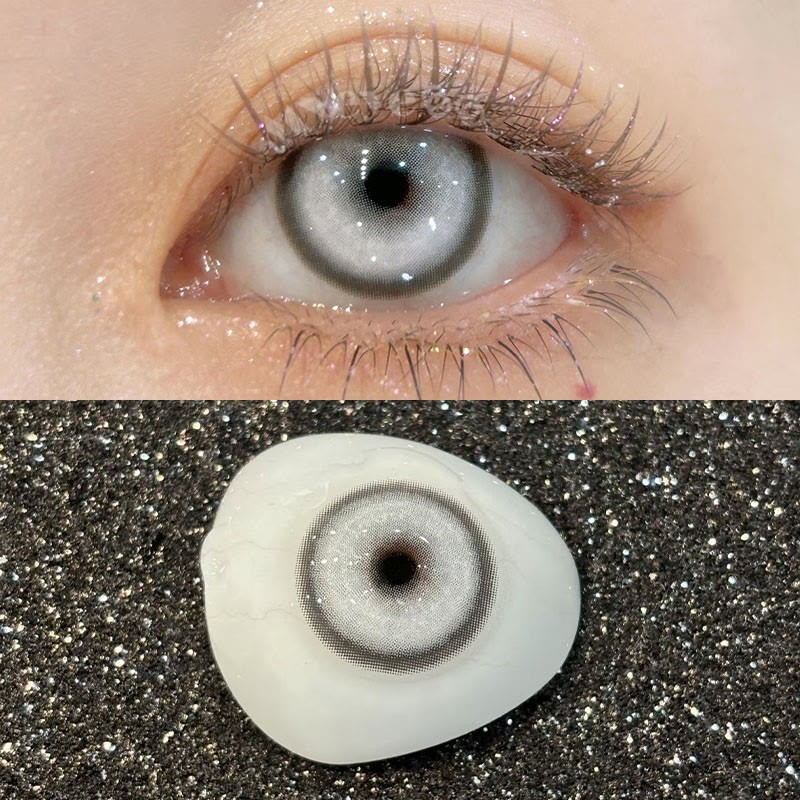 Water content: 40% Material: HEMA Base curve: 8.5mm Thickness: 0.08mm Diameter: 14.5mm Pupil diameter: 3.0mm Period of use: 1 Year/1 Day Packaging: 1 Pair (2 lenses) + Lens case (Daily disposable lenses do not come with a lens case) Tip: The pupil size is only 3.0mm, which may block part of the vision, and the effect varies from person to person. Power 0.00 Product lD: RC01_GY, Power -1.00~-8.00 Product lD: T2001_GY *Packaging Updating. New and old packaging will be shipped randomly. *Lenses on different eye color will show different effects. Pictures for reference only. -Coloredeye