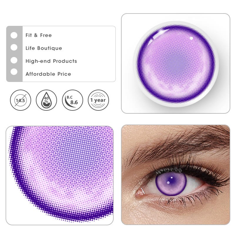Water content: 40% Material: HEMA Base curve: 8.6mm Thickness: 0.08mm Diameter: 14.5mm Period of use: 12 months Packaging: 1 Pair (2 lenses) + Lens case Tip: It will block part of the view, it is not recommended to drive or read. Perfect for TikTok and photos👍 *Packaging Updating. New and old packaging will be shipped randomly. *Lenses on different eye color will show different effects. Pictures for reference only. -Coloredeye