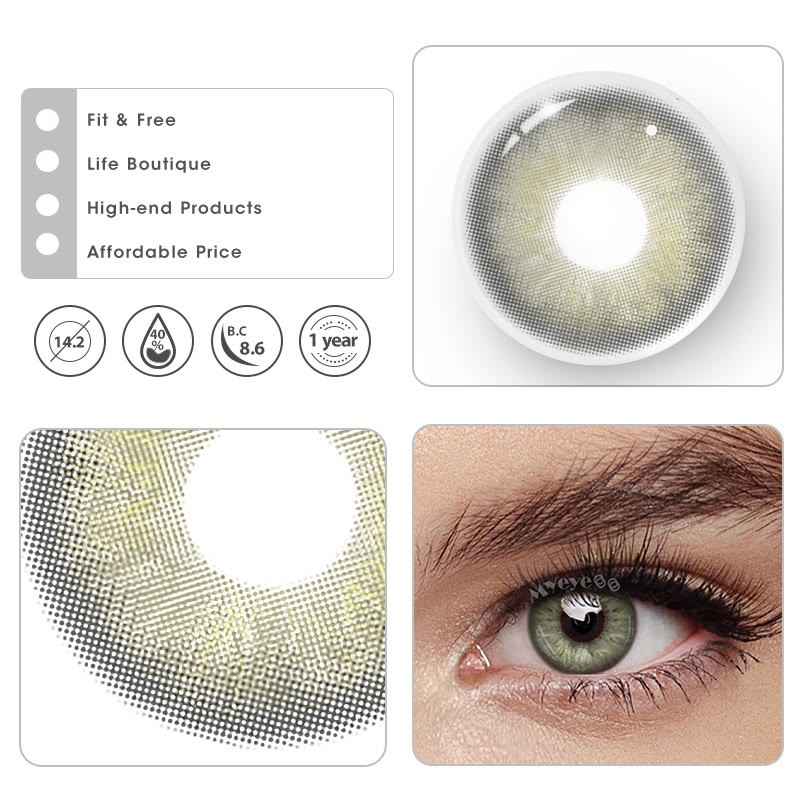Water content: 40% Material: HEMA Base curve: 8.6mm Thickness: 0.08mm Diameter: 14.2mm Graphic Diameter: 13.8mm Optical Zone: 4.0mm Period of use: 12 months Packaging: 1 Pair (2 lenses) + Lens case *Packaging Updating. New and old packaging will be shipped randomly. *Lenses on different eye color will show different effects. Pictures for reference only. -Coloredeye