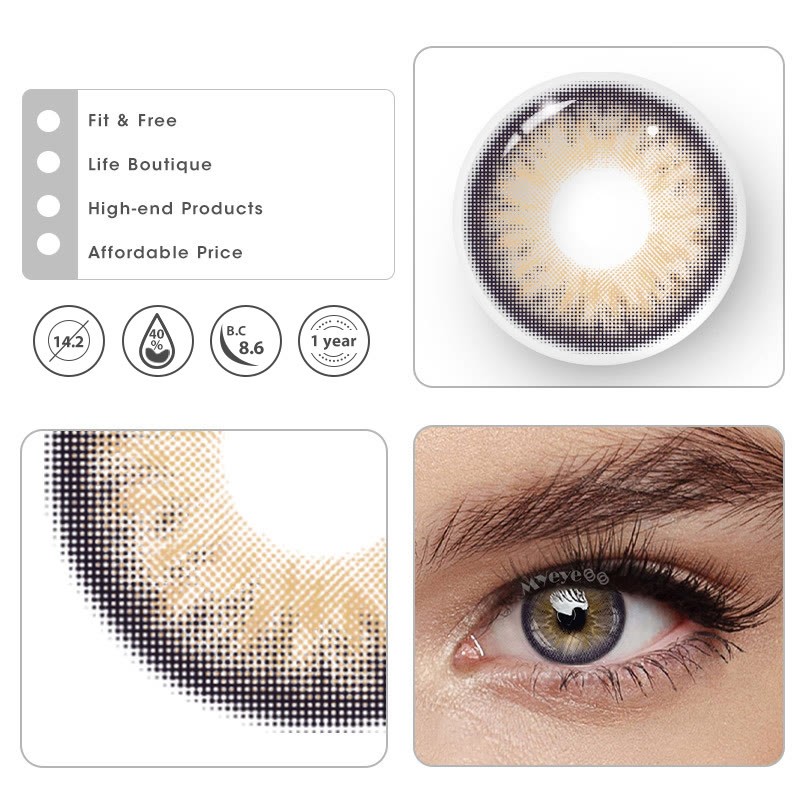 Water content: 40% Material: HEMA Base curve: 8.6mm Thickness: 0.08mm Diameter: 14.2mm Period of use: 12 months Packaging: 1 Pair (2 lenses) + Lens case *Packaging Updating. New and old packaging will be shipped randomly. *Lenses on different eye color will show different effects. Pictures for reference only. -Coloredeye